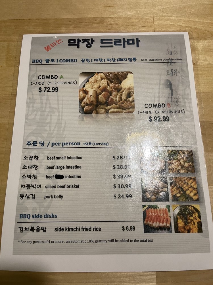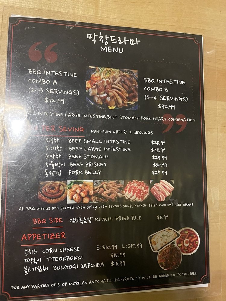 Introducing Makchang Drama, a Korean Barbeque spot in Lakewood, WA, known for its delivery and takeout services in a classy setting. The standout dish is the small/large intestine combo, served hot on a sizzling plate with a side of spicy soup. Customers rave about the generous portion sizes and flavorful experience. The menu also features unique twists like kimchi fried rice and corn cheese. The ambiance is cozy and welcoming, perfect for a casual dinner or hosting a party. Diners appreciate the attentive service and variety of soju flavors available. Makchang Drama promises a memorable dining experience with a touch of Korean drama vibes.